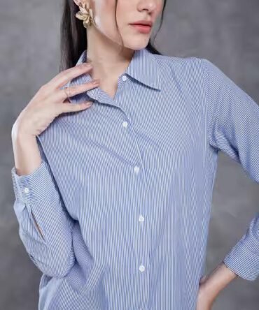Medium Length Spread Collar Full Sleeve Striped Shirt
